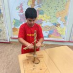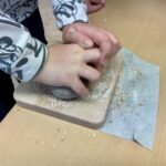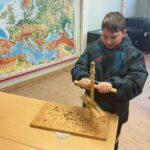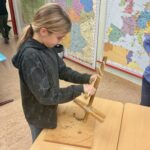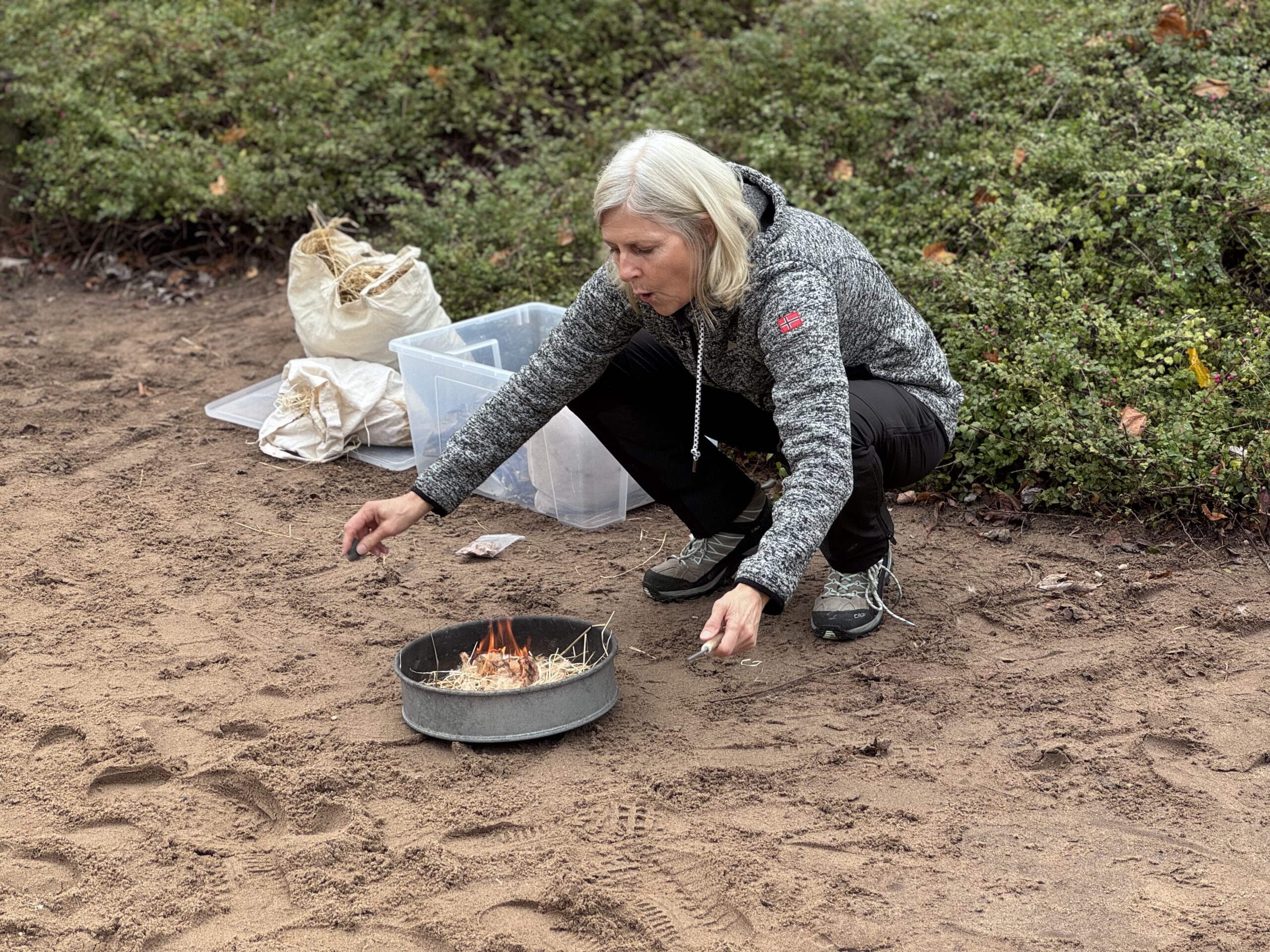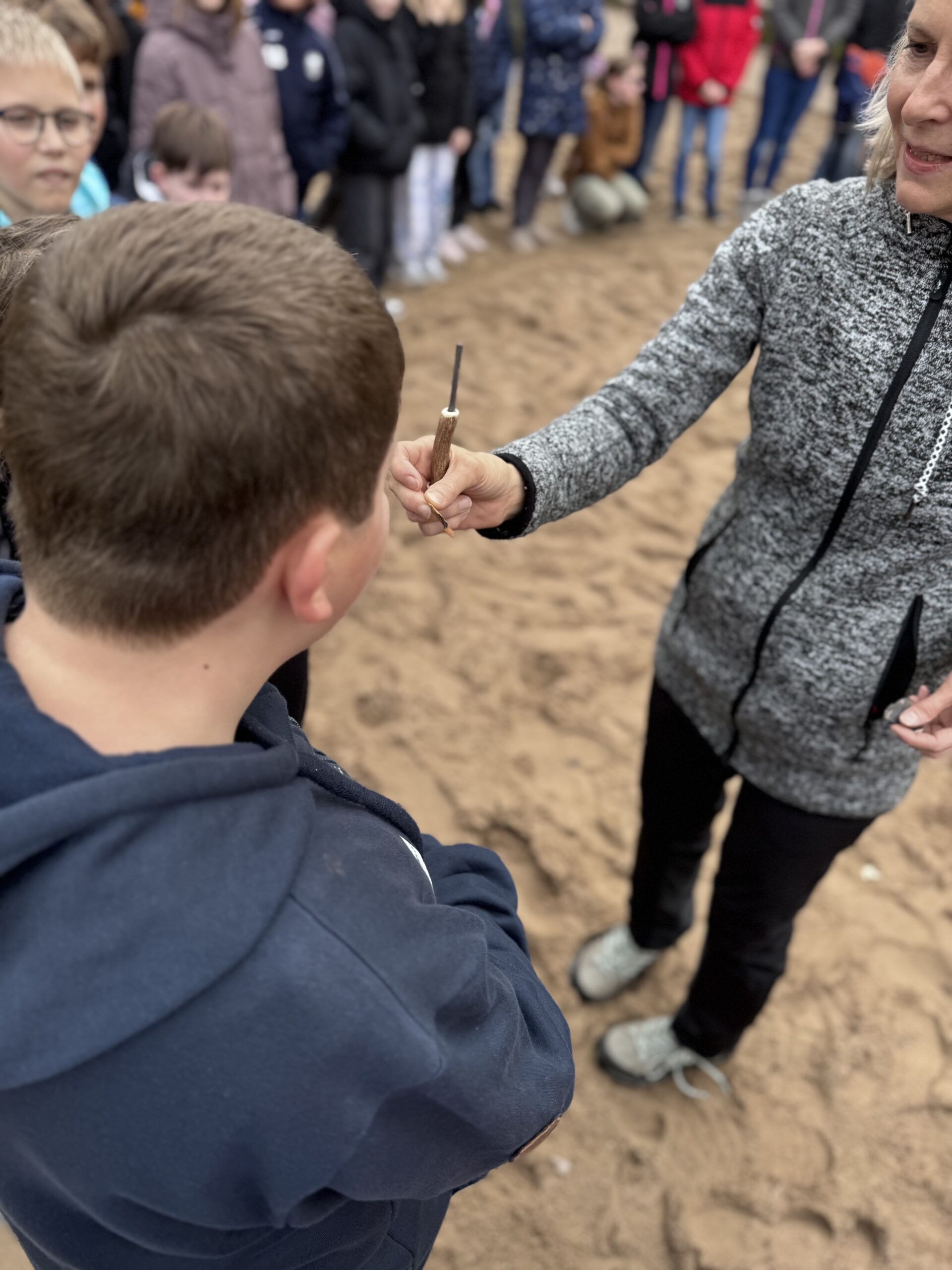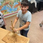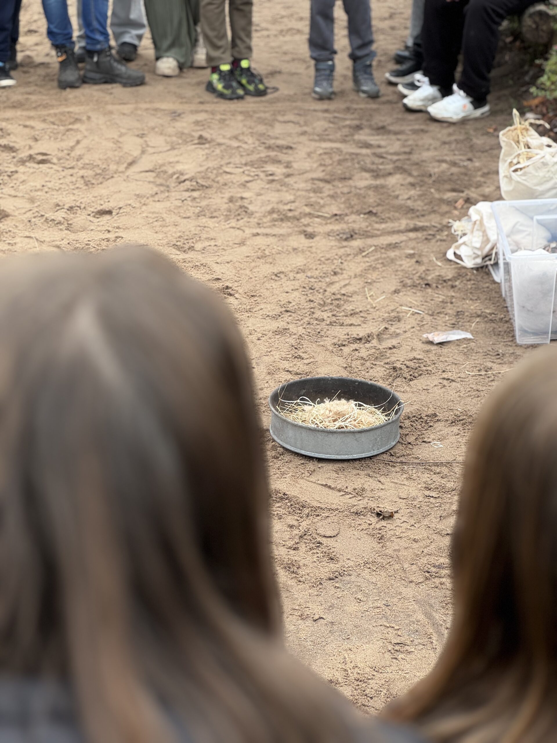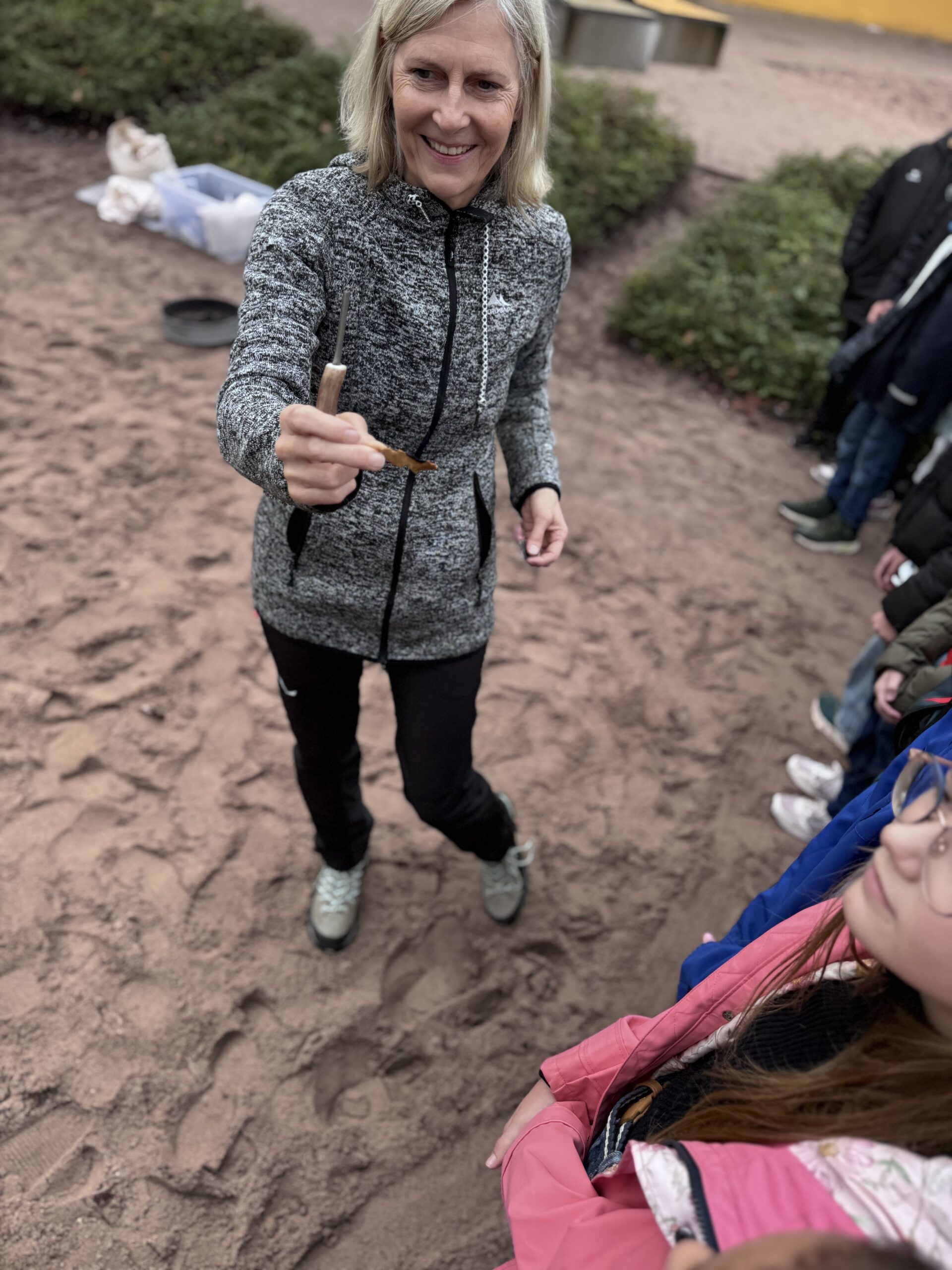 Ein besonderes Highlight war das Feuermachen wie in der Altsteinzeit. Mit viel Geduld und beeindruckender Ausdauer probierten die Kinder das Bohren mit dem Feuerbohrer aus. Konzentration, Technik und Muskelkraft waren gefragt – und die Begeisterung war groß, als erste Rauchfahnen aufstiegen.